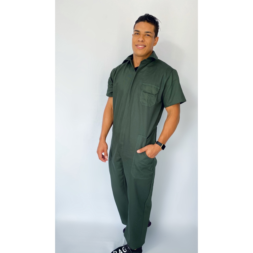 Macacão Operacional Masculino Manga Longa, Ideal Para Trabalho Em Empresas, Industria, Mecanica, Esportes em Brim - Rose Carcelin (VERDE BANDEIRA)
