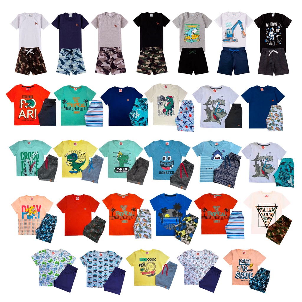 kit 10 peças de roupas 5 conjuntos masculino infantil verão barato bermudas e camisas estampadas tamanho 1 2 3 4 6 8 10