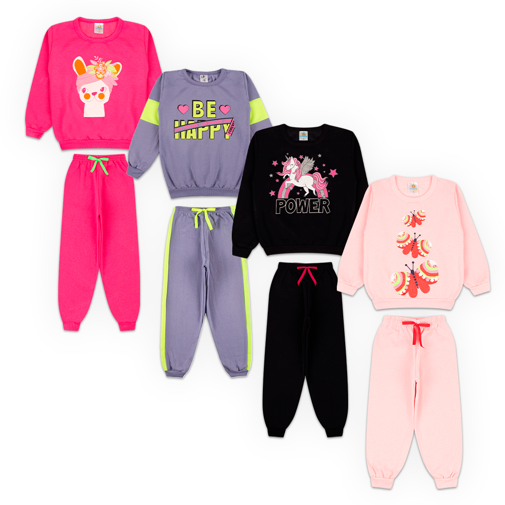 Kit Sortido 4 Peças de Roupas Feminino Infantil Inverno – 2 blusas casacos + 2 calças de 1 ao 10 – Kit 2 Conjuntos Moletom Infantil Menina Inverno com Calça e Casaco
