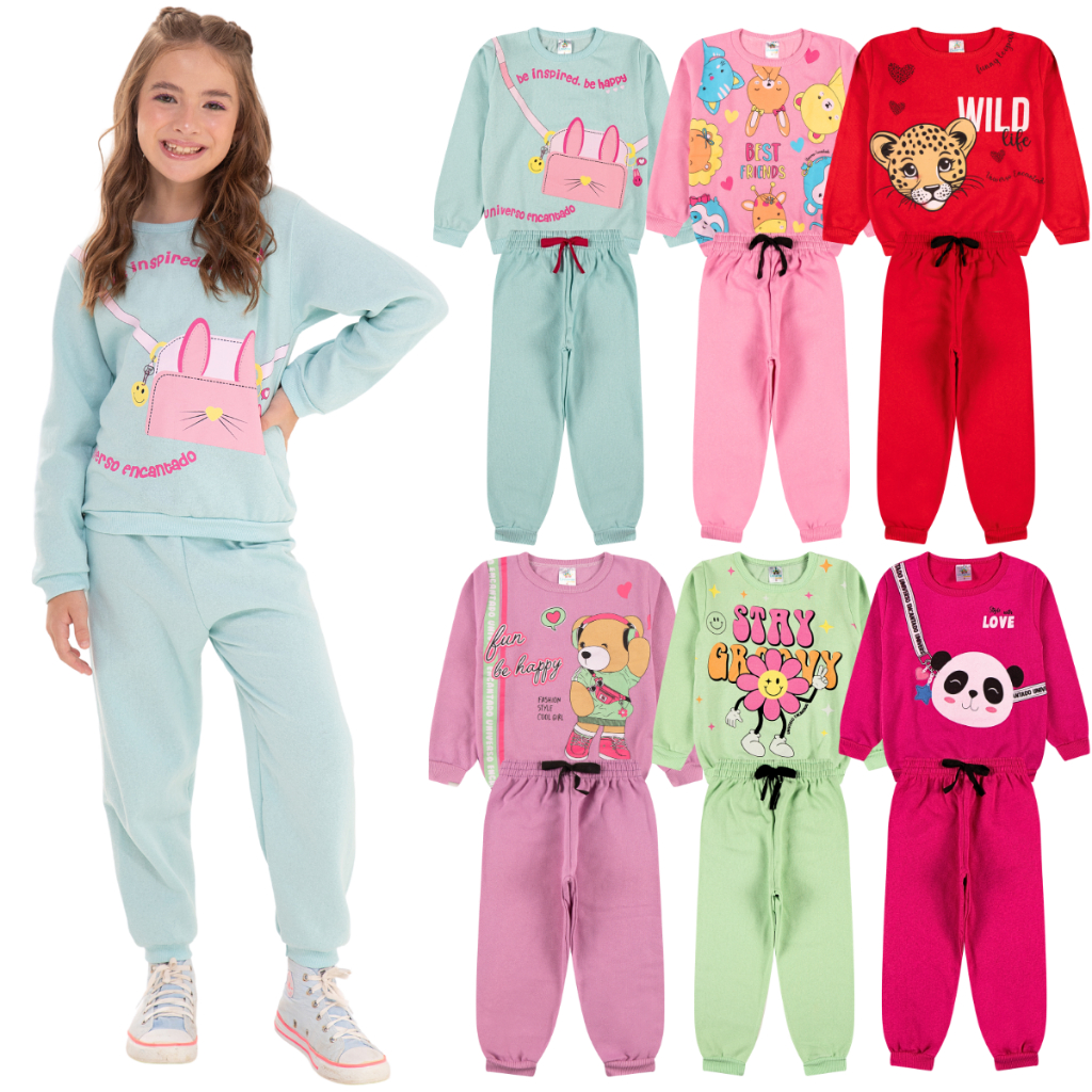 Kit Sortido 10 Peças de Roupas Feminino Infantil Inverno – 5 blusas casacos + 5 calças de 1 ao 10 – Kit 5 Conjuntos Moletom Infantil Menina Inverno com Calça e Casaco