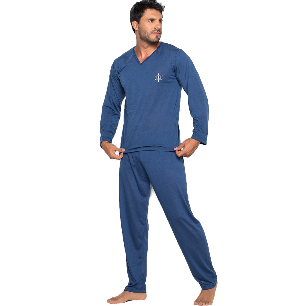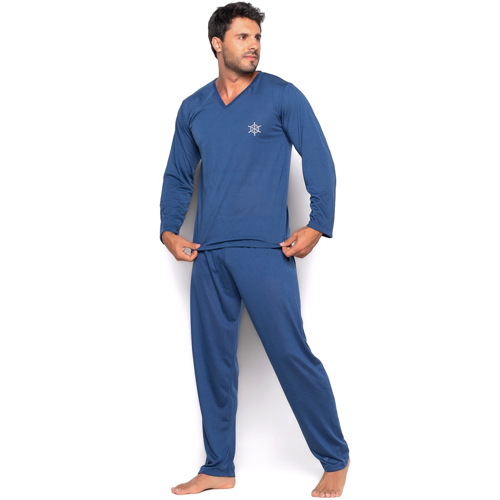 Pijama Longo MVB Modas Blusa Manga Comprida E Calça Adulto Azul