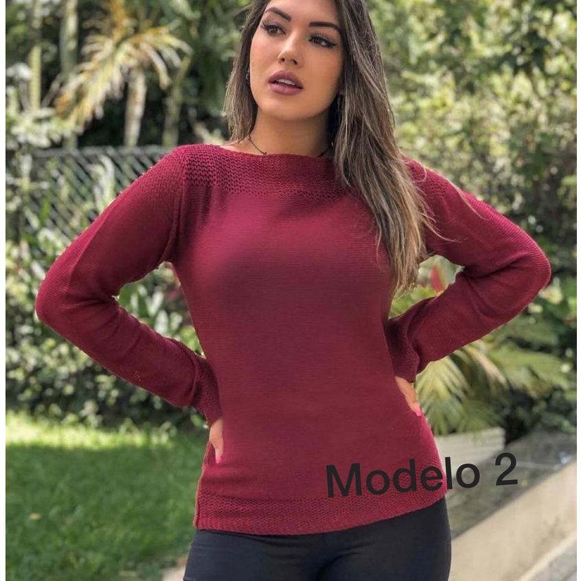 Blusinha de frio Blusa em E Gola Reta Ombro A Ombro Canelada Mesclado Em listras Suéter Manga Longa Tricot com Elastano Meia estação Outono e Inverno 2023