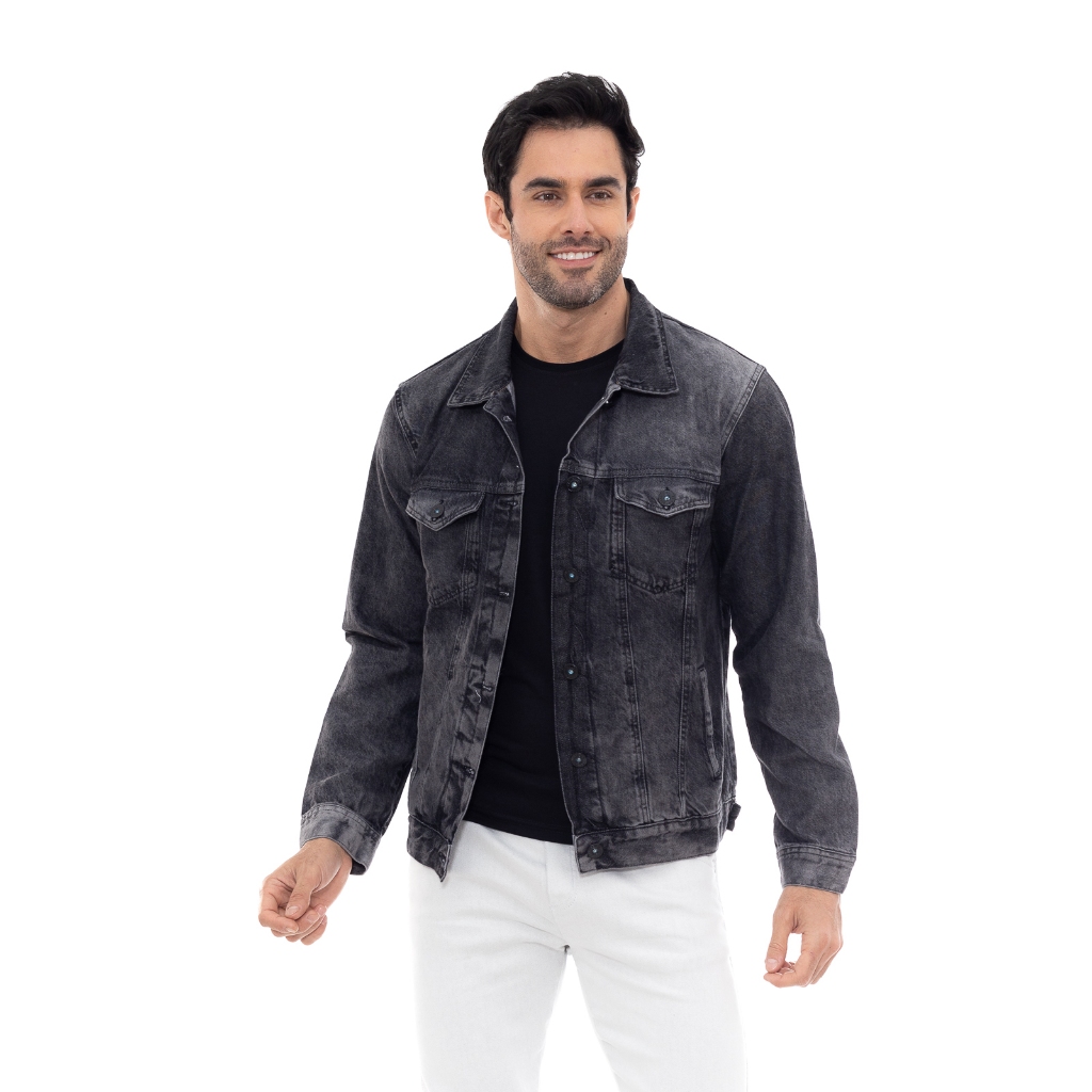Jaqueta Jeans Masculina Escura com Bolso Yuri
