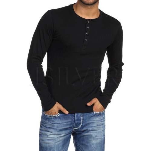 Camiseta HENLEY Masculina Slim Fit Manga Longa J SILVER - PRETA / AZUL / VINHO