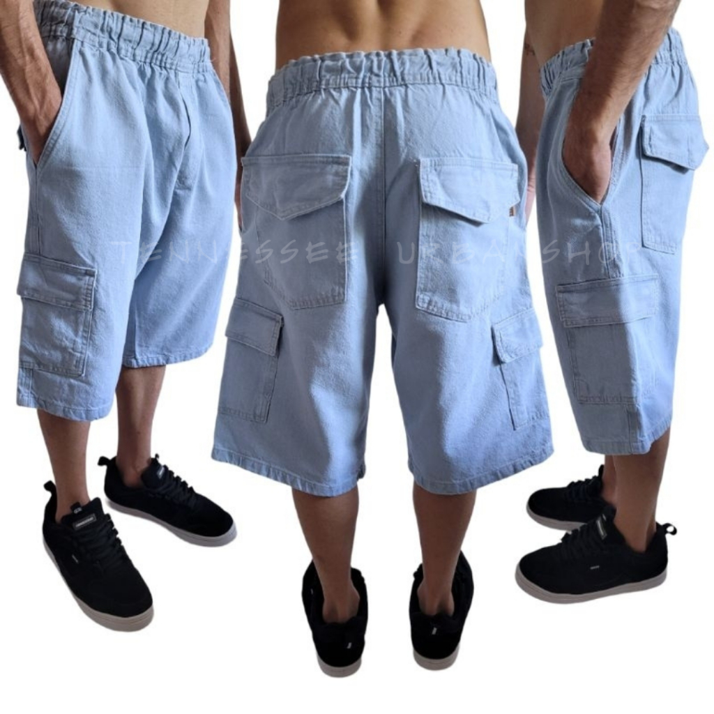 Bermuda Masculina Estilo Cargo Jeans Claro e Escuro cós em elastico
