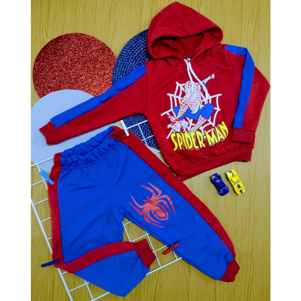 Roupa Infantil Conjunto Criança Masculino Menino de Inverno Calça + Casaco Homem Aranha Spider Man Peter Parker Anime Super Herói Marvel Infanto Juvenil Barato Pronta Entrega P M G GG (2 a 12 anos)