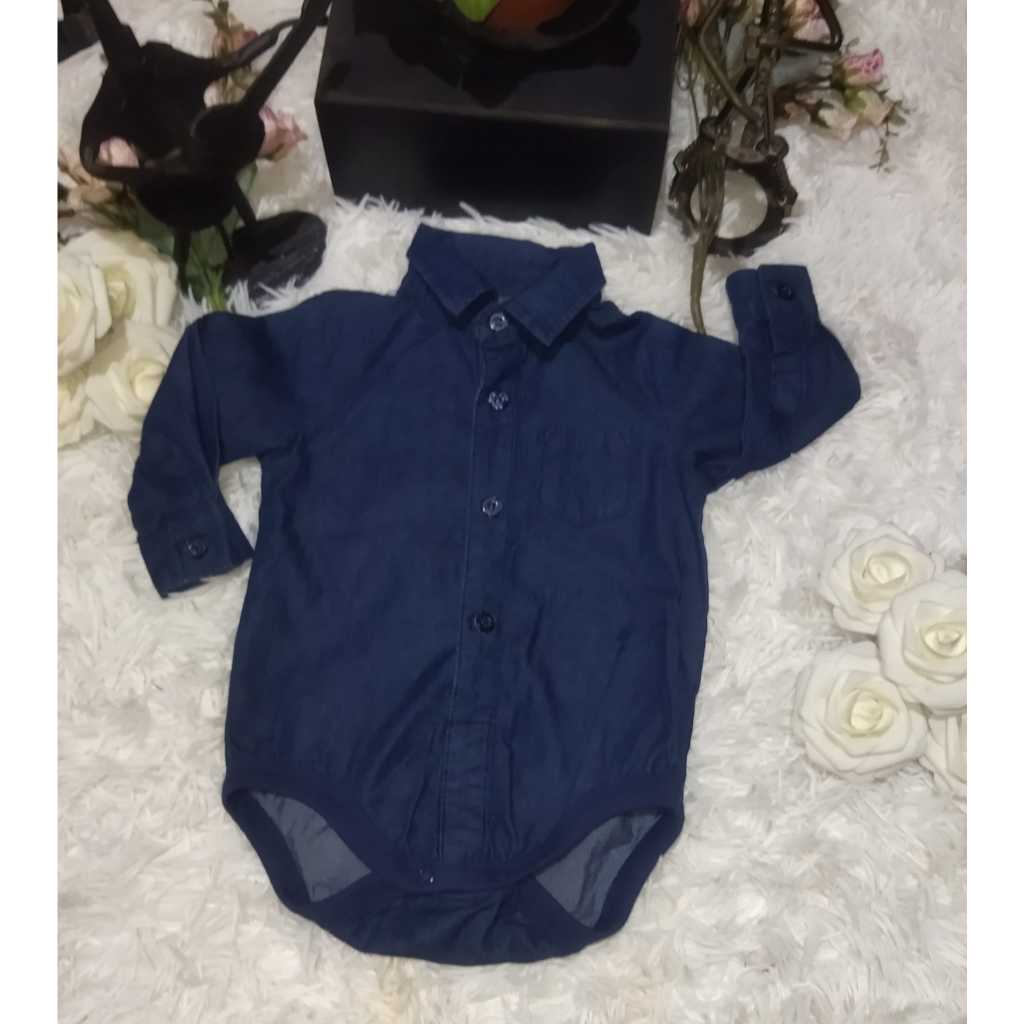 Body Bebê Camisa Masculino, Manga Longa, Jeans, Tam: 3 a 6 Meses, Marca: Baby Club Mini