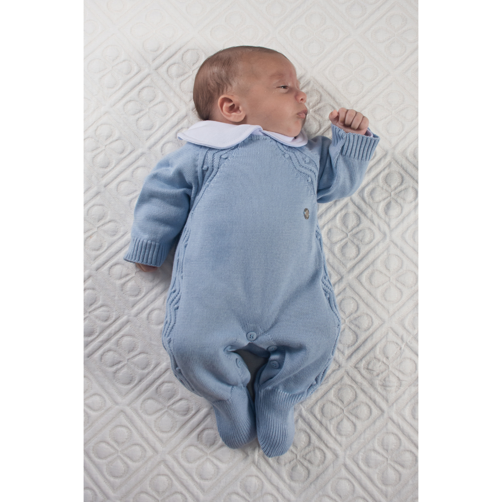 Saida Maternidade Menino Tricot Macacão com Body P 1 a 3 Meses
