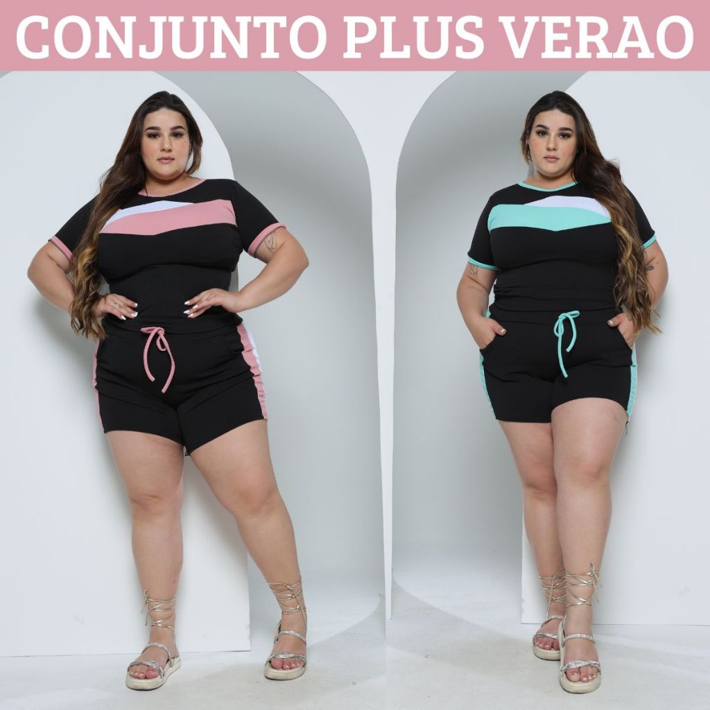 Conjunto Plus Size Feminino Primavera Verão 2 Peças Short Curto e Blusa Manguinha Tamanhos Grandes G1 G2 G3 Tecido Malha Crepe