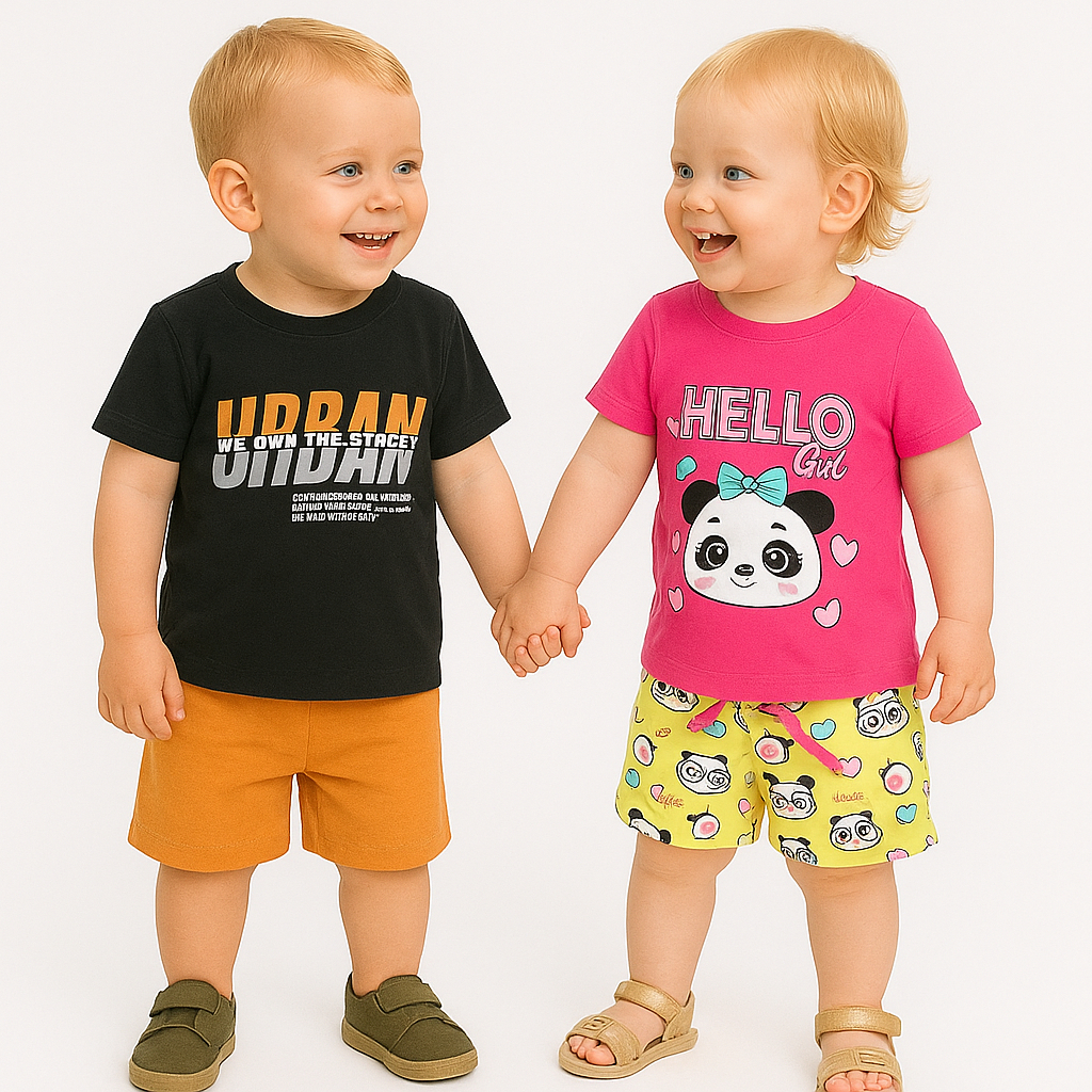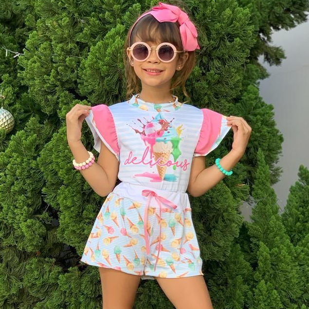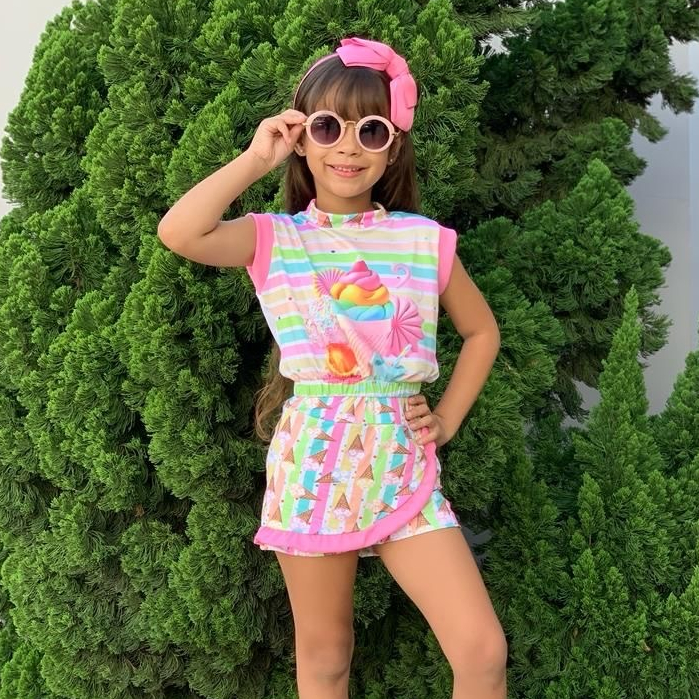 Conjunto Infantil 2 Peças Blusa e Short LACINHO com Estampa Variadas em Malha crepe dia a dia