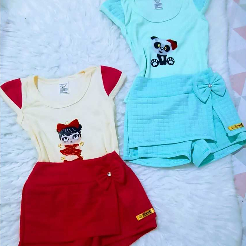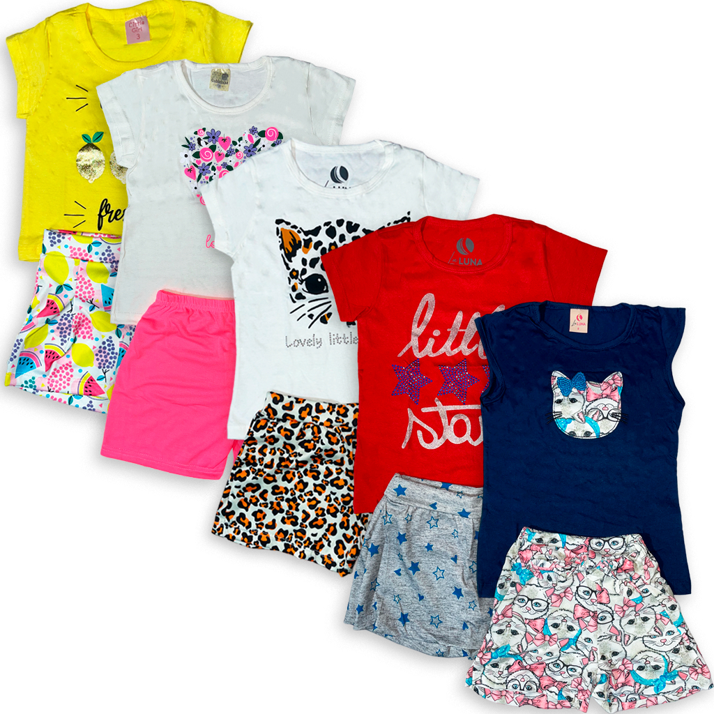 Kit 08 ou 04 Peças Conjunto Infantil Menina Verão 04 ou 02 Conjuntos Total 4 ou 2 Camiseta ou Regata + 4 ou 2 Shorts ou Short Saia Menina Algodão