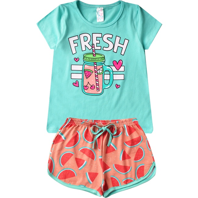 Conjunto infantil Menina 2 peças BÁSICO 1 ao 16 Verão em Cotom blusa e shorts