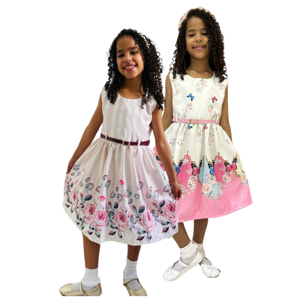 Vestido bebe Floral Personagens Temático Vestido Infantil menina