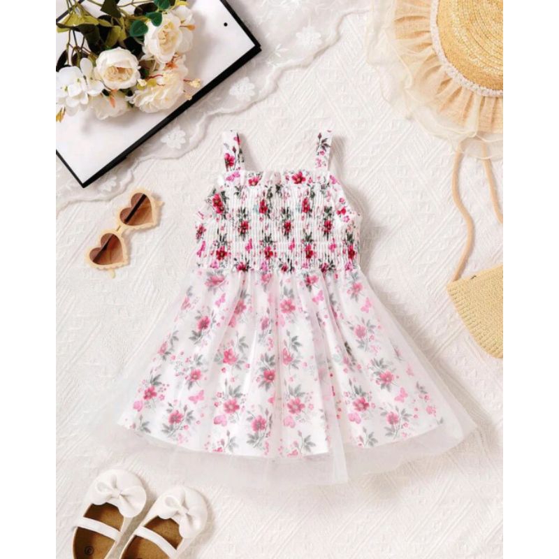 Vestido Infantil para Bebê Menina Com tule Floral Verão Primavera