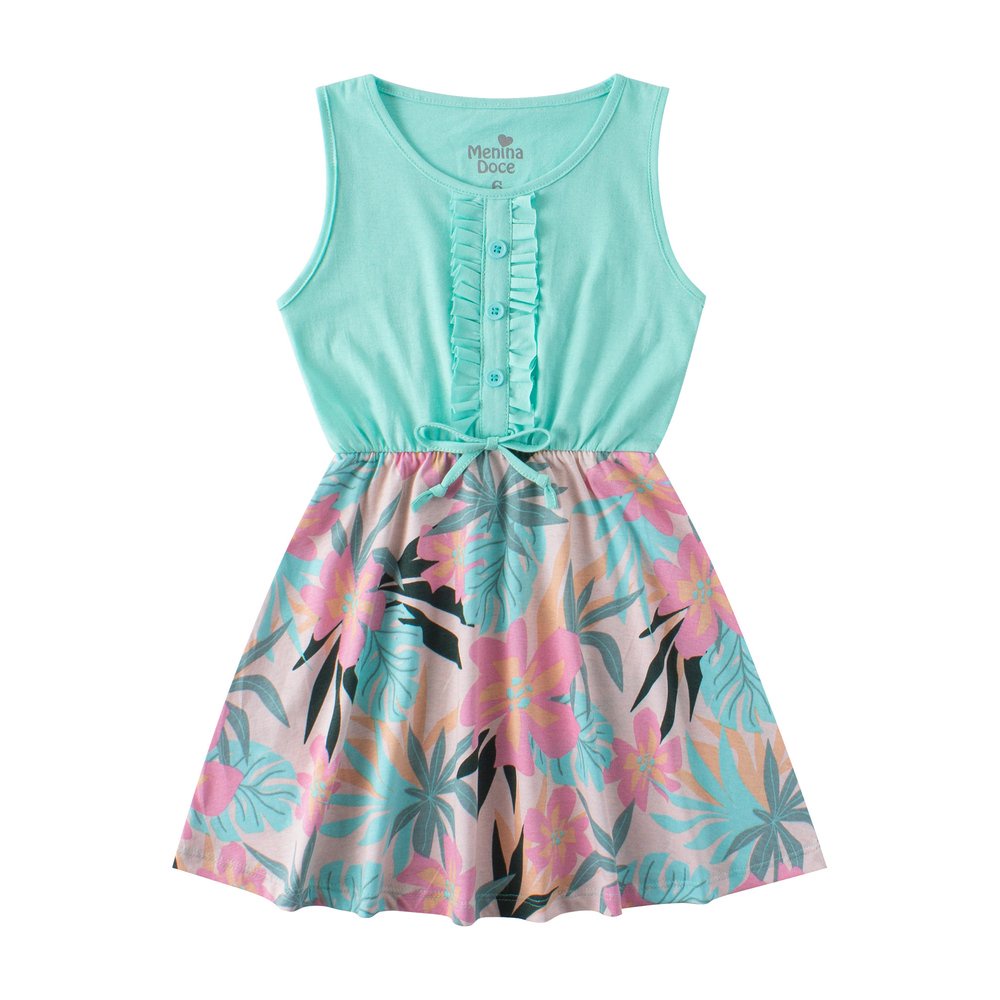 Vestido Infantil Feminino Meia Malha/Meia Malha Rotativa Floral - Menina Doce