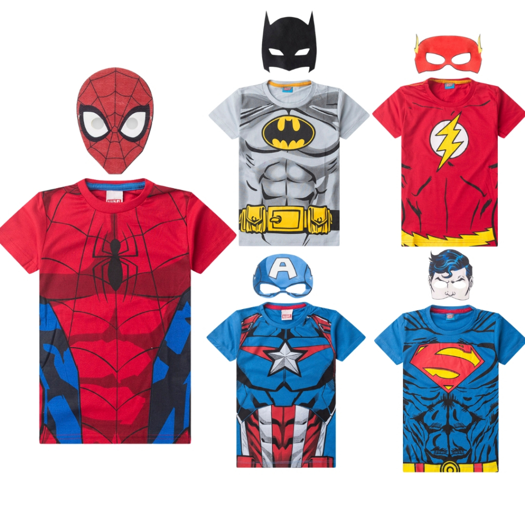 Camiseta Fantasia Super Herois com Mascara Carnaval Manga Curta Infantil Batman Super Homem Menino