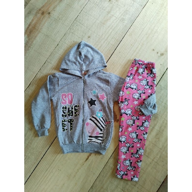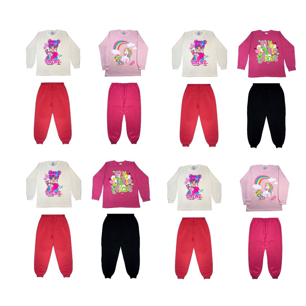 Conjunto Infantil Feminino Menina de Inverno Calça + Casaco (Moletom Flanelado) P M G GG (2 a 12 anos)