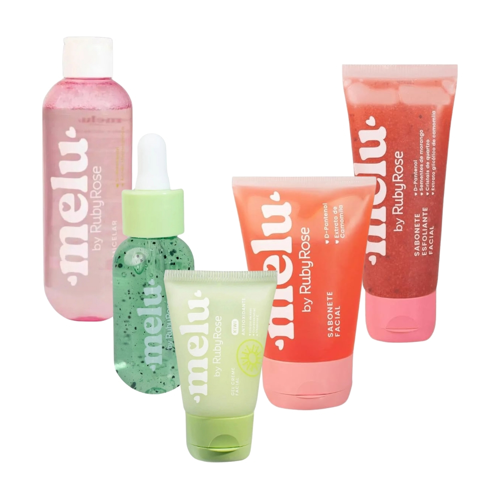 Kit C/5 Itens Skincare Cuidado Facial Melu Ruby Rose