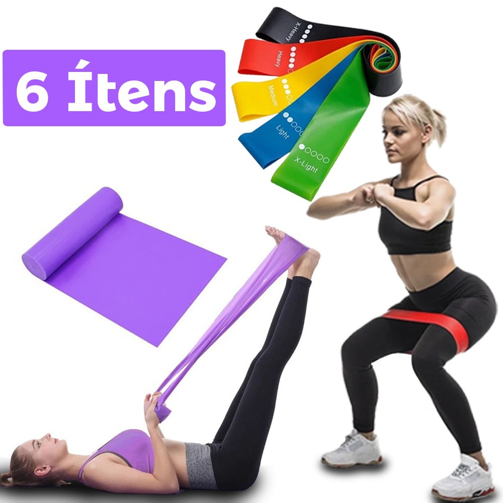 Kit 6 Itens Exercícios Faixas Elástica Fisioterapia Multifuncional Cross Faixa Thera Band 1,5 Metro