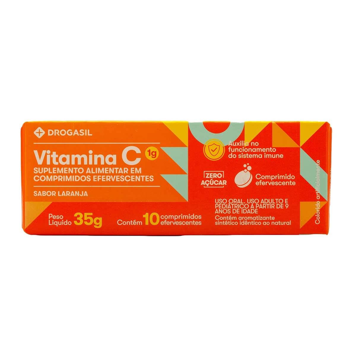 Vitamina C 1G Drogasil Sabor Laranja com 10 Comprimidos Efervescentes
