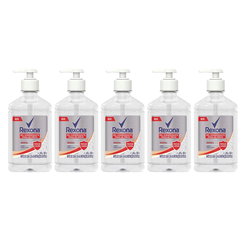 Kit 5 Alcool Em Gel 70o Inpm Rexona Original 500ml