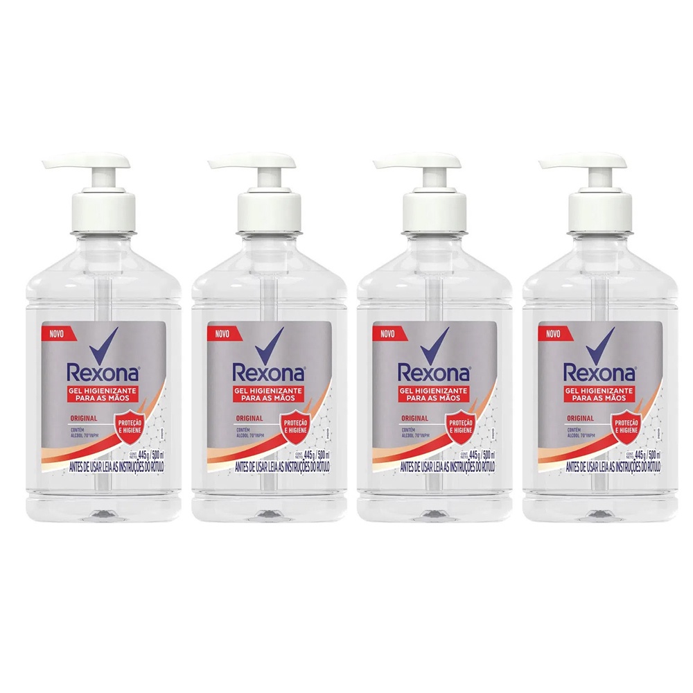Kit 4 Alcool Em Gel 70o Inpm Rexona Original 500ml Pronta Entrega
