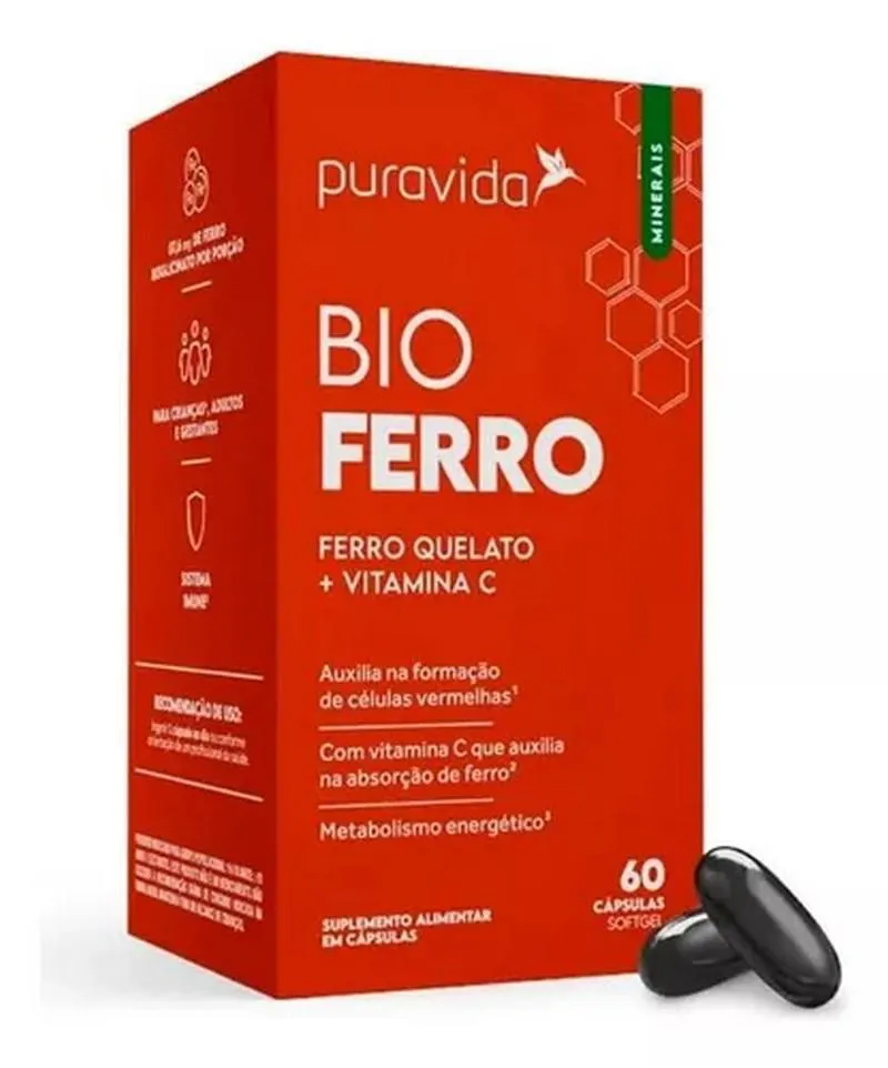 BIO FERRO - FERRO QUELATO + VITAMINA C - 60 CAPS - PURA VIDA