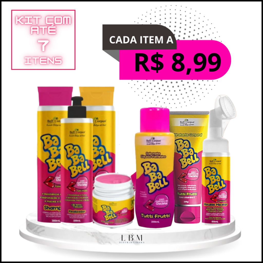 Kit Shampoo e Condicionador Cronograma Capilar Mascara Finalizador Bababell Bell Corpus Tutti Frutti