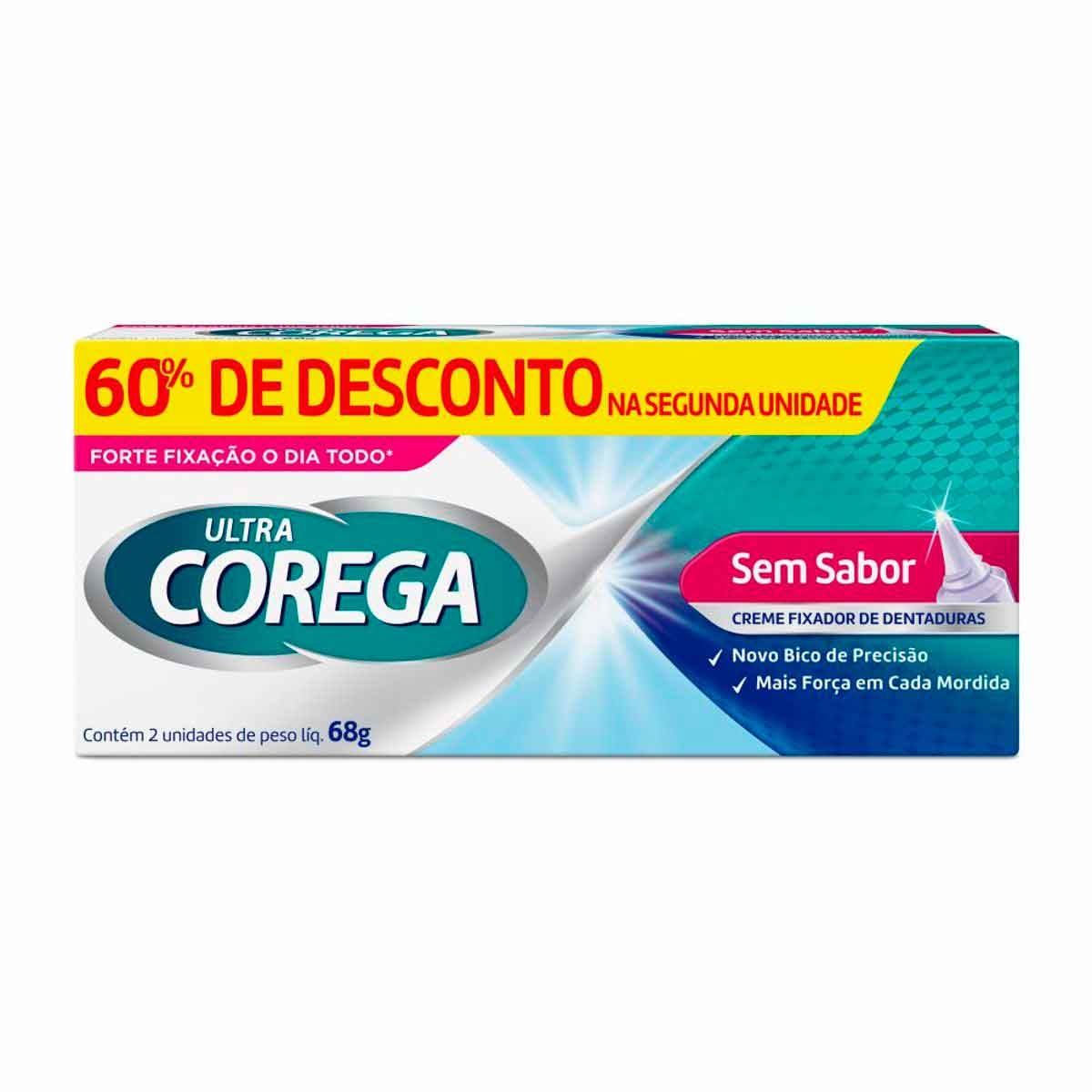Kit Ultra Corega Creme Fixador De Dentadura Sem Sabor 68/70gr - 60% Off Na 2ª Unid.