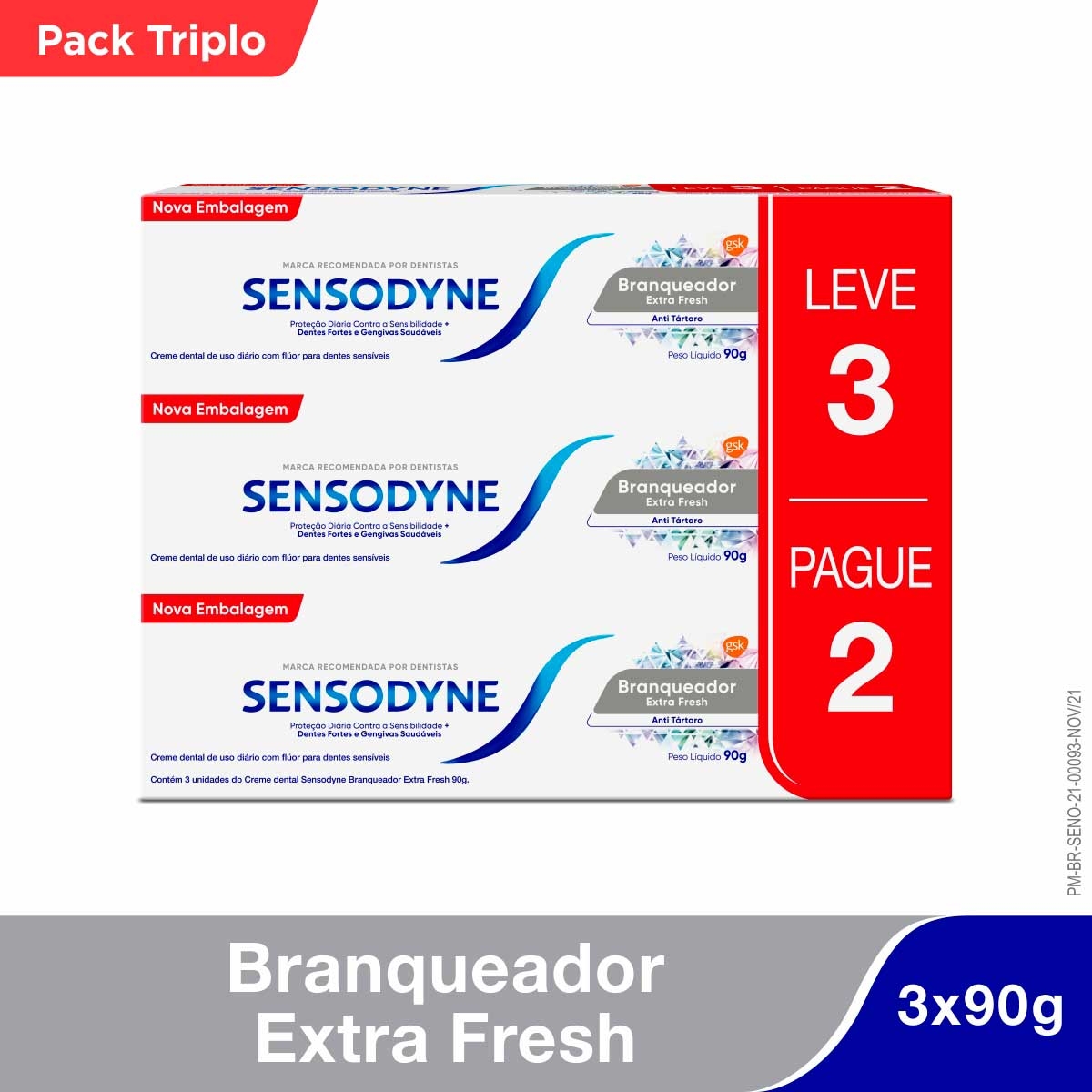 Kit Pasta de Dente Sensodyne Branqueador Extra Fresh com 3 unidades de 90g cada