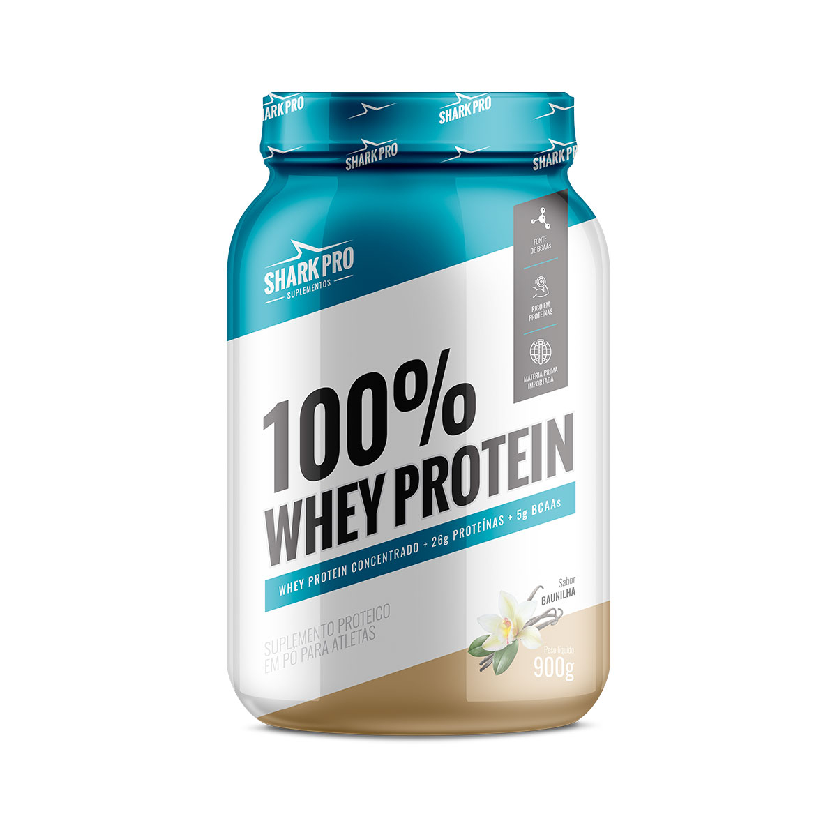100% WHEY PROTEIN POTE 900G BAUNILHA - SHARK PRO