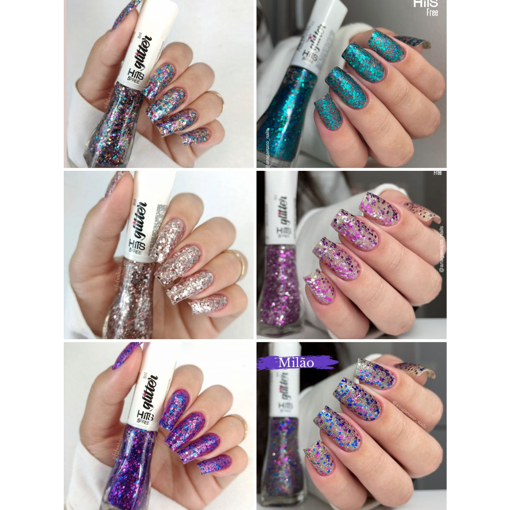 Kit C/6 Esmaltes Hits Diamante Glitter Refletivo Brilha