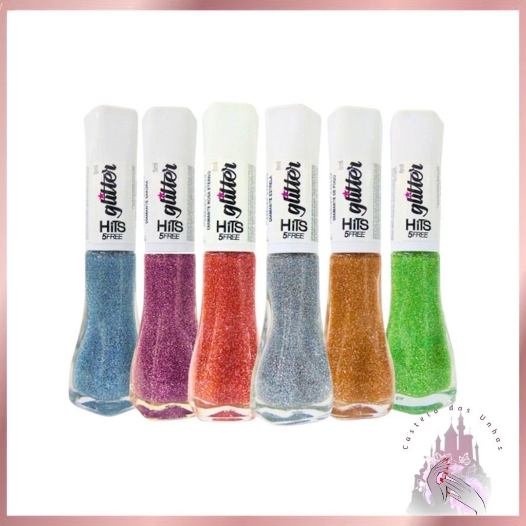 Kit com 6 Esmaltes Hits Glitter Flocado Brilho 5Free