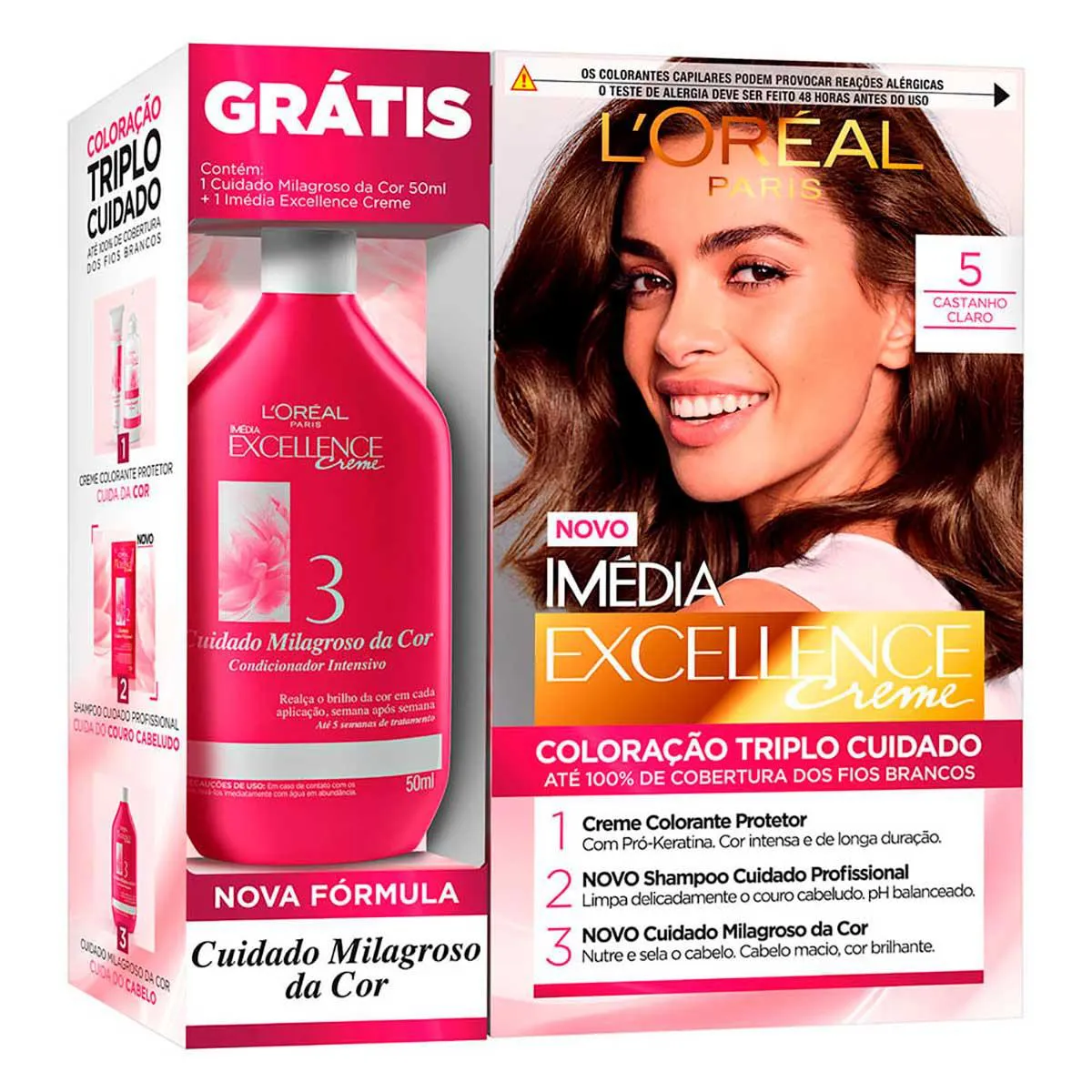TINTURA PERMANENTE IMÉDIA EXCELLENCE CREME 5 CASTANHO CLARO 1 UNIDADE