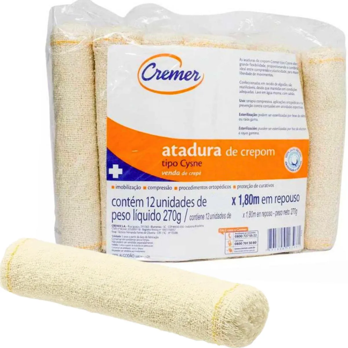 PACOTE 12 UNIDADES - CURATIVO FAIXA/ATADURA DE CREPOM CYSNE 10CMX1,80M CREMER