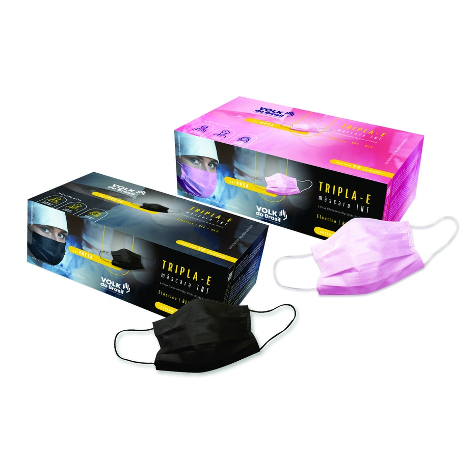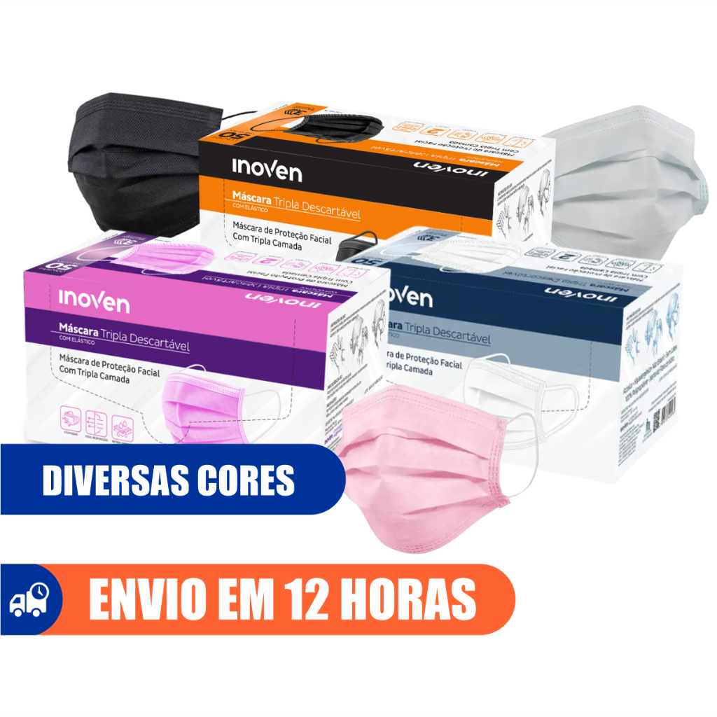 Máscara Cirúrgica 50un Descartável Tripla Branca Preta Rosa Elástico Inoven