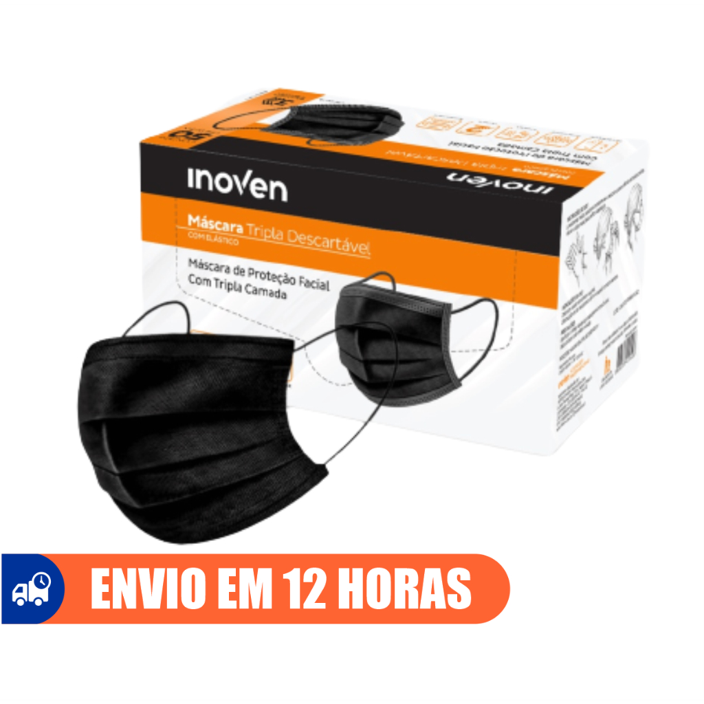 Máscara Descartável Tripla Preta Proteção Facial Inoven 50 Und
