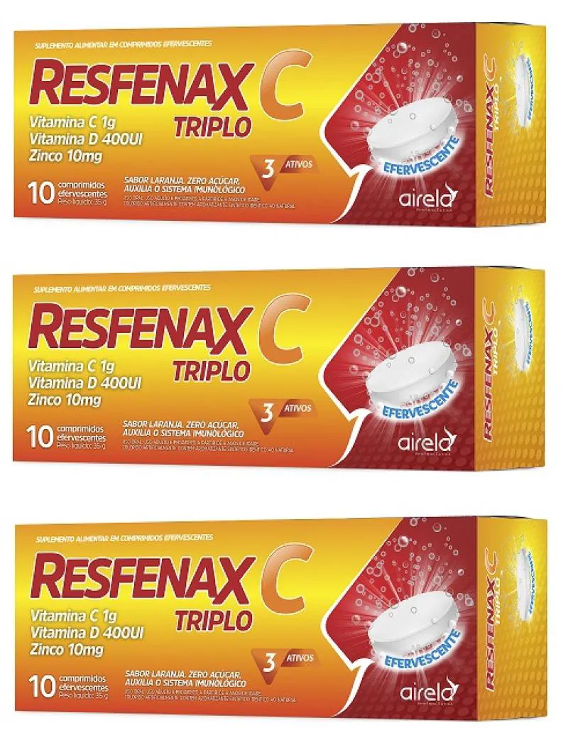 Kit Vitamina C Efervescente Airela Resfenax Triplo C Tripla Ação Laranja 10 comprimidos 3 unidades