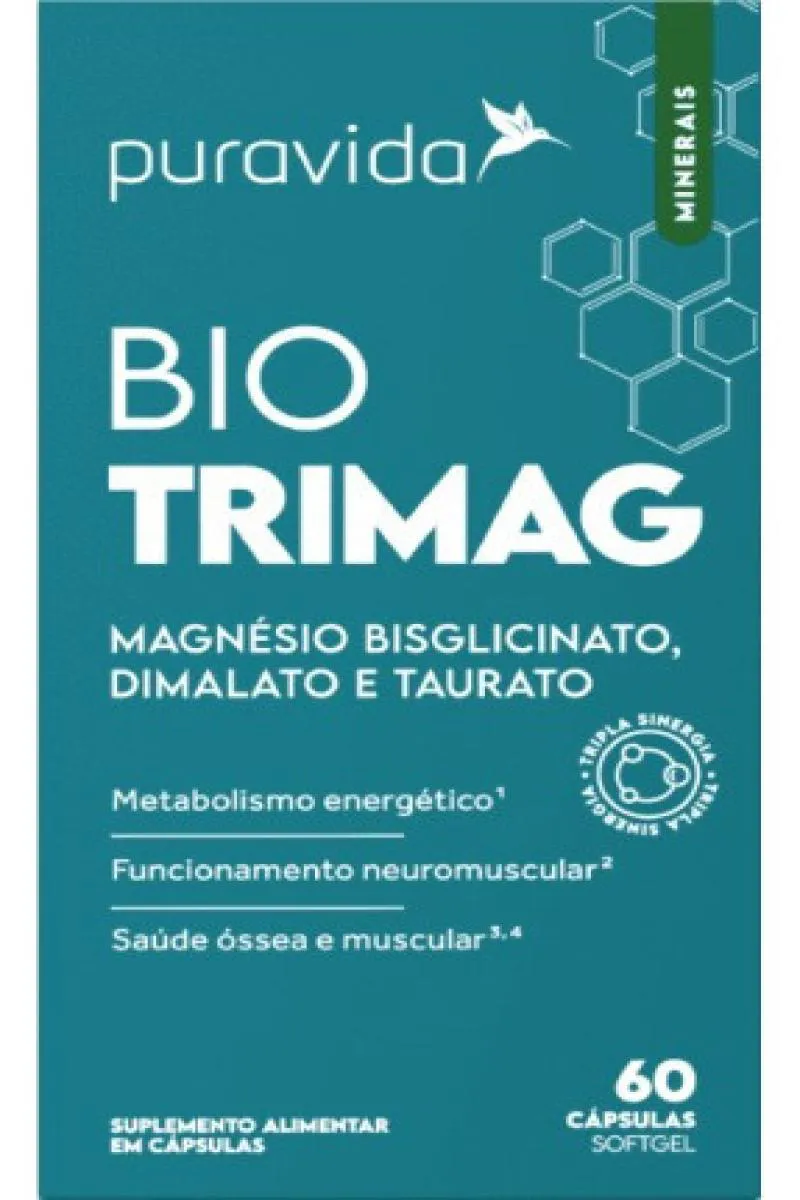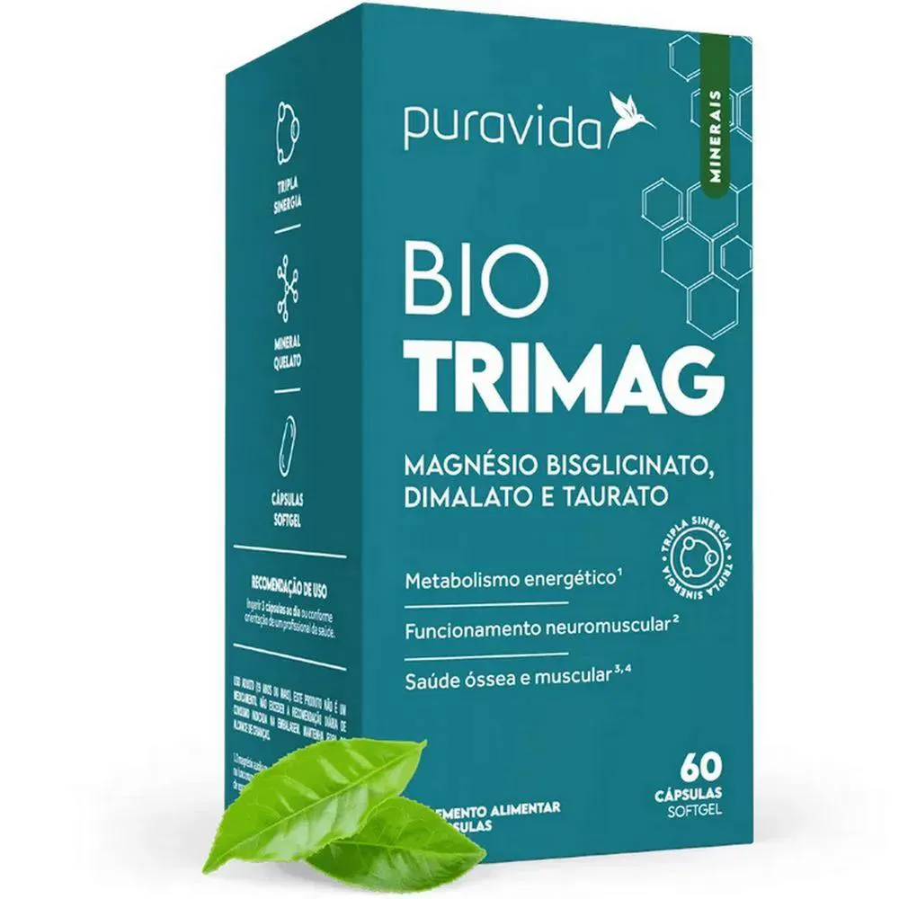 Magnésio Bisglicinato + Dimalato + Taurato Bio Trimag Pura Vida 60 Caps