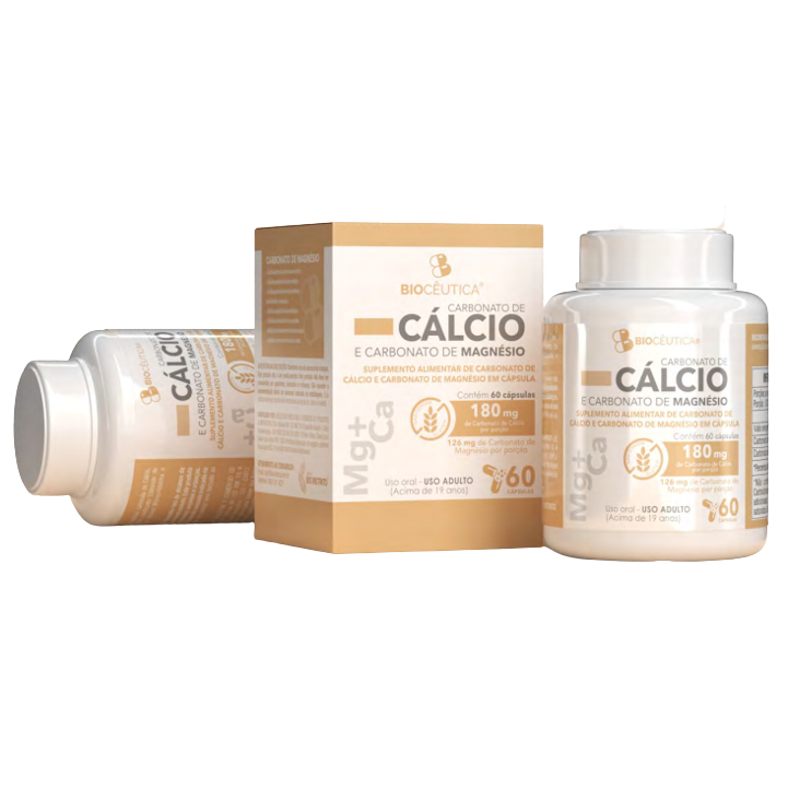 Suplemento Alimentar de Carbonato de Cálcio e Carbonato de Magnésio 60 Cápsulas - BioCêutica
