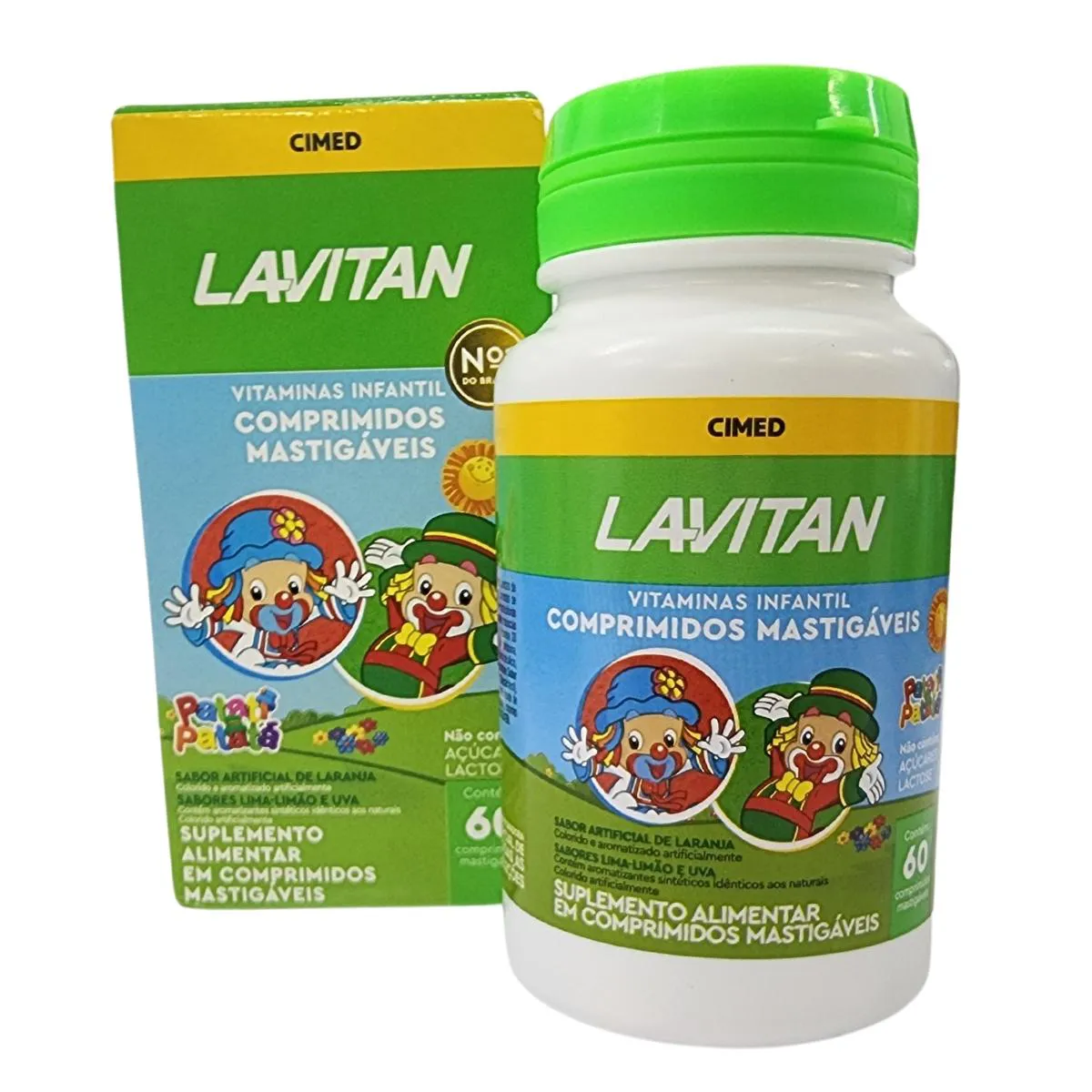 SUPLEMENTO DE VITAMINAS A, C, D E DO COMPLEXO B SABOR LARANJA, LIMA-LIMãO E UVA LAVITAN CIMED 60 COMPRIMIDOS MASTIGáVEIS