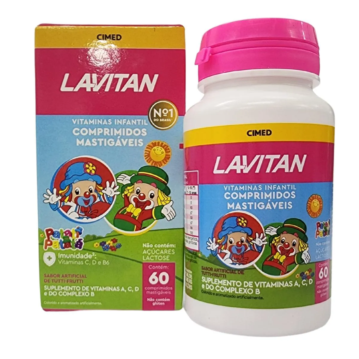 SUPLEMENTO DE VITAMINAS A, C, D E DO COMPLEXO B SABOR TUTTI FRUTTI LAVITAN CIMED 60 COMPRIMIDOS MASTIGáVEIS