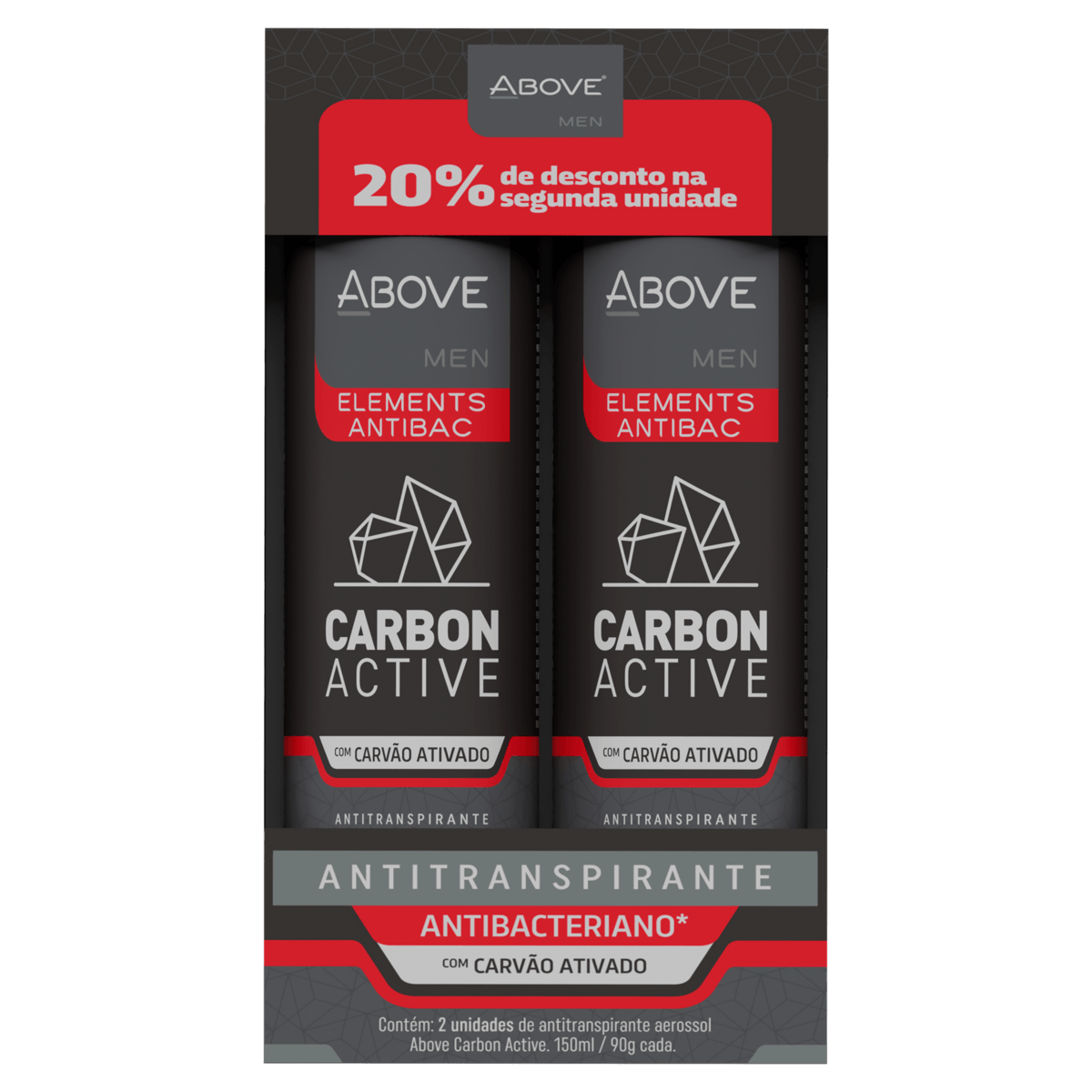 Desodorante Aerosol Above Men Elements Antibac Carbon Active 2 un -150ml cada