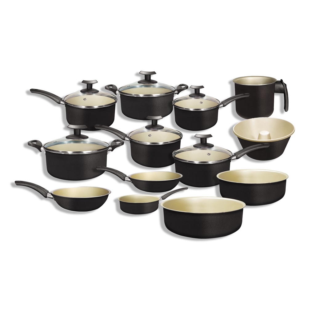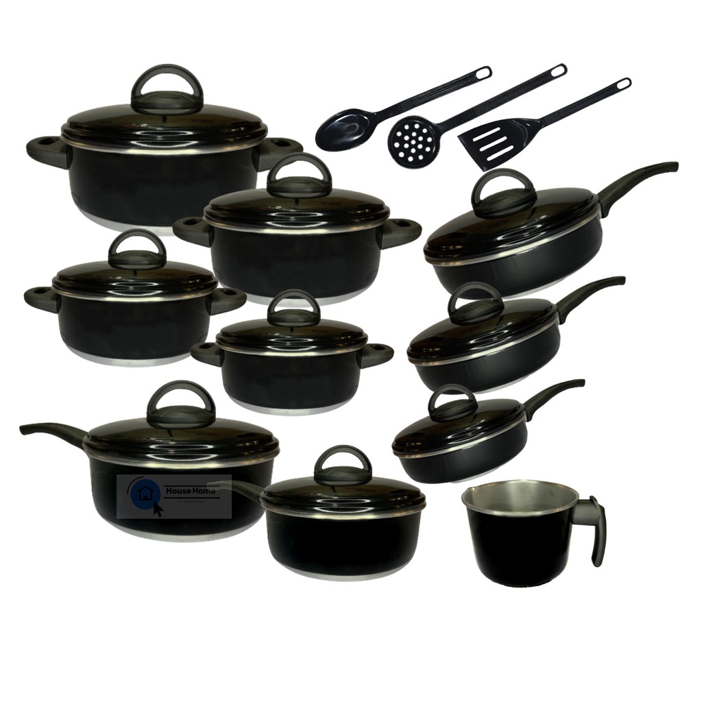 kit Jogo conjunto de panelas 13 peças Preto Com Tampa de Alumínio com Utensílios Completo