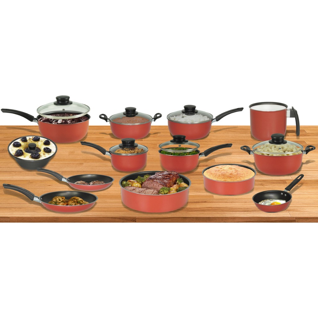 Jogo de Panelas 13 Peças Conjunto Antiaderente com Tampa de Vidro Varias Cores