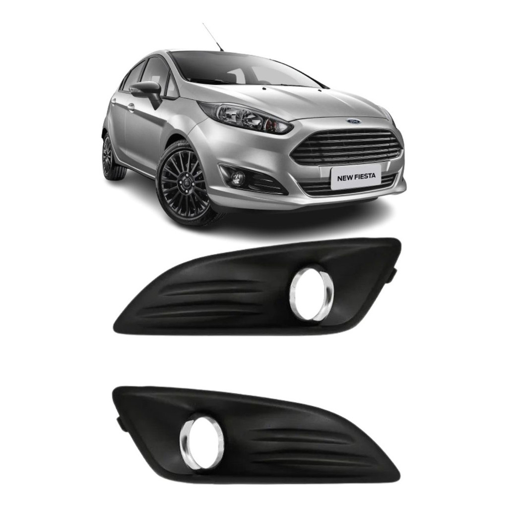 Par Moldura Farol De Milha New Fiesta 2014 2015 2016 2017 Com Aro Cromado