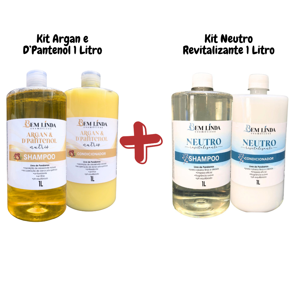 Combo Kit Argan E D'Pantenol 1 Litro + Kit Neutro Revitalizante 1 Litro Shampoo E Condicionador Lavatório Salão De Beleza Cheiroso