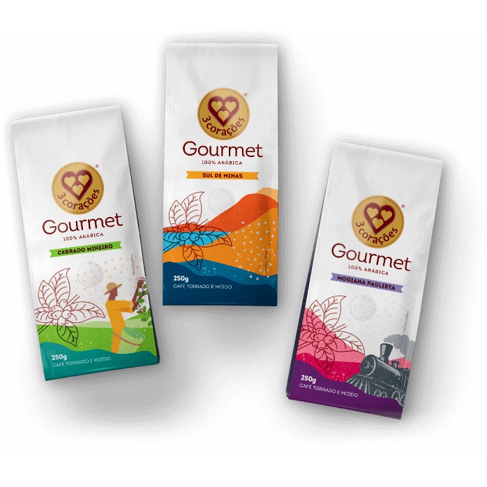 Café 3 Corações Gourmet 100% Arábica - Torrado e Moído - Embalagem de 250 g Escolha o Sabor
