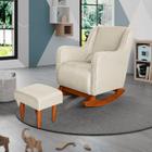 Cadeira Poltrona de Amamentação e Balanço C/ Puff Linho Bege - Lahome Decor Aquila
