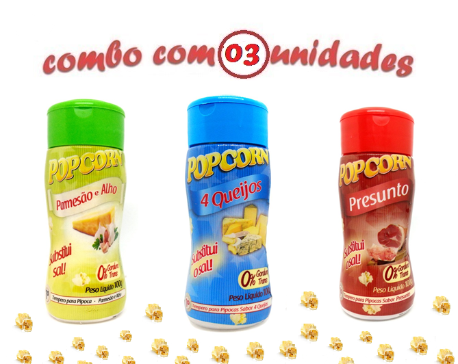 Combo Popcorn - 03 Sabores - 4 Queijos, Parmesão e Alho e Presunto